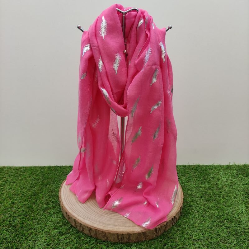 Foulard Fuchsia imprimé brillant argenté motif plume