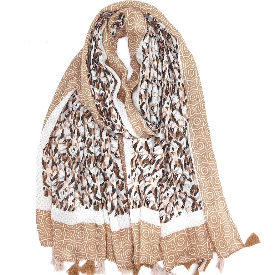 Foulard imprimé avec pompons bicolores