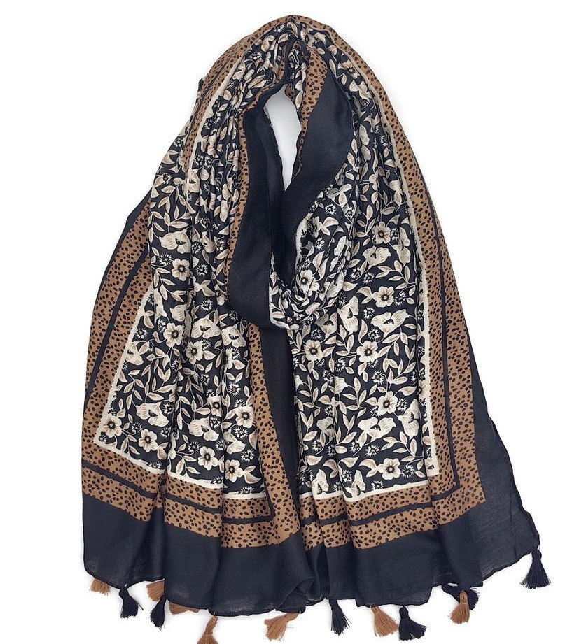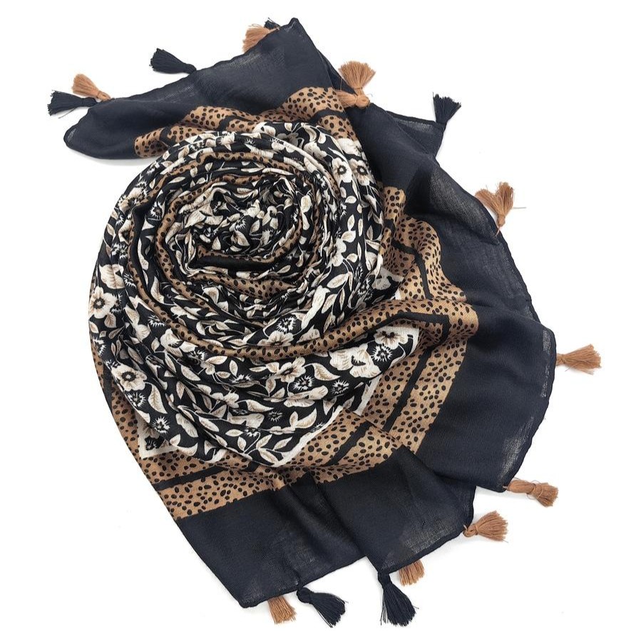Soyez le premier à laisser votre avis sur “Foulard imprimé fleur avec pompon bicolore”