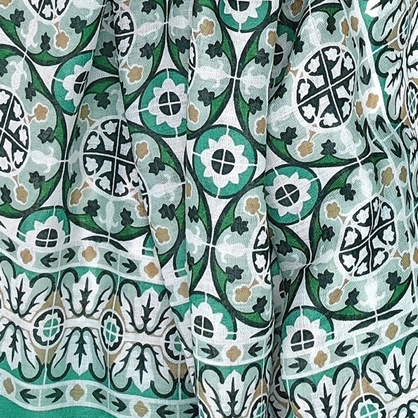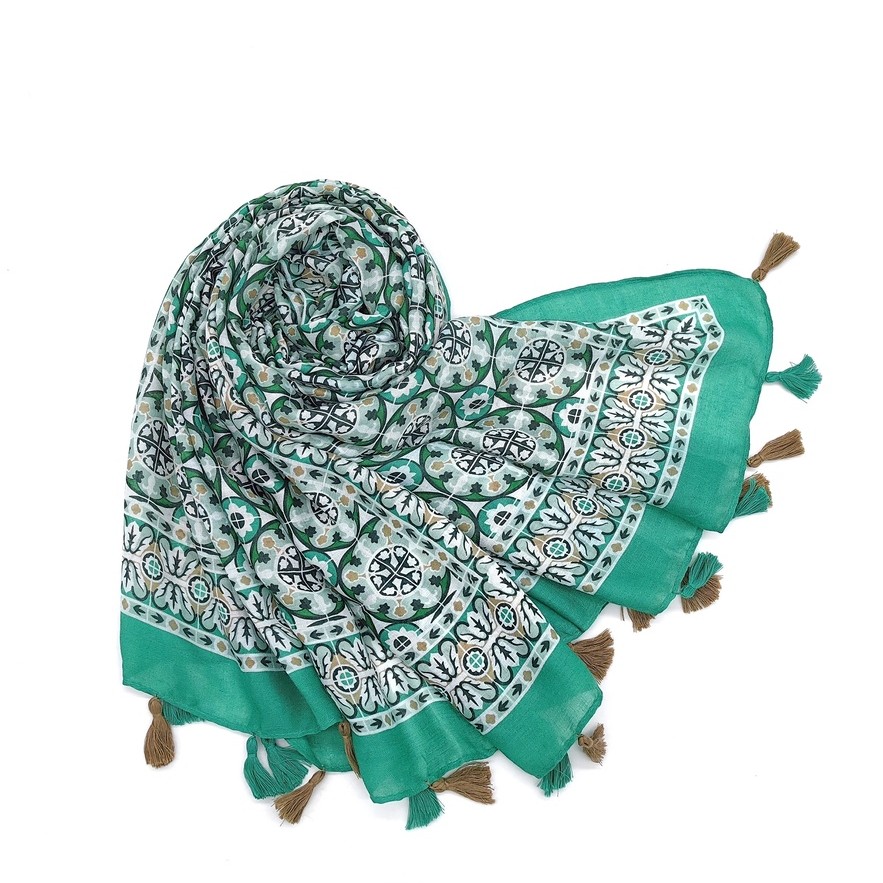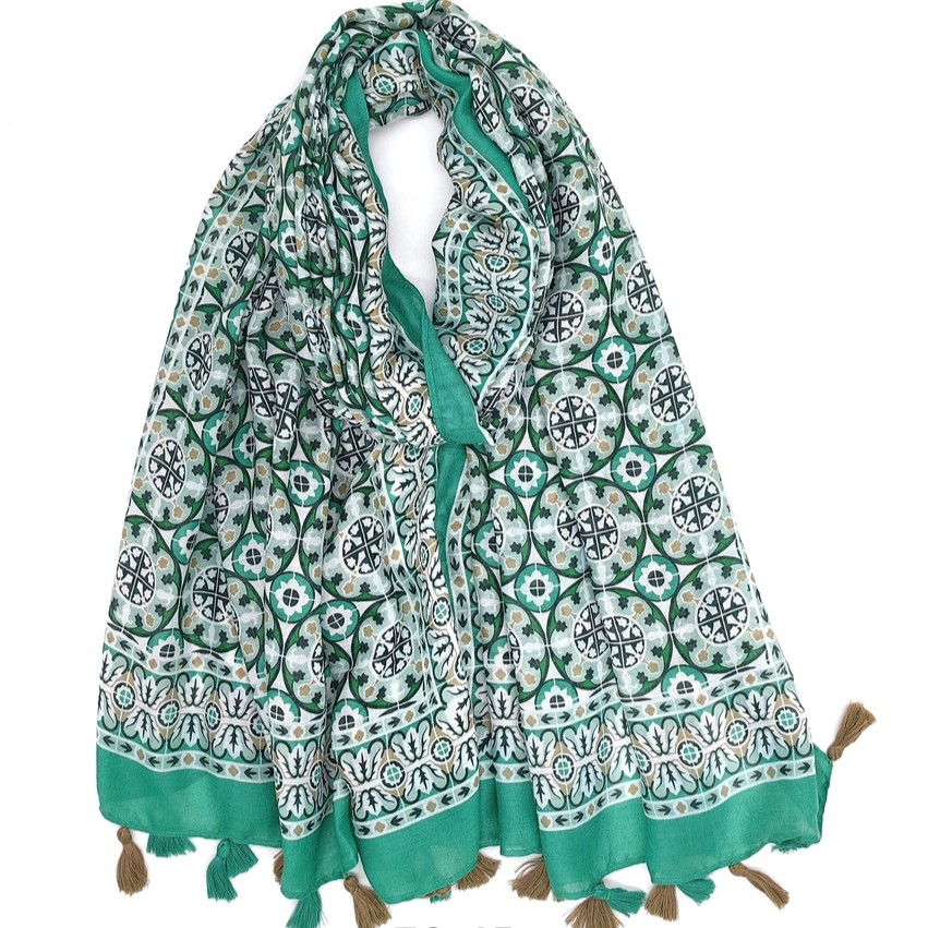 Foulard imprimé mosaïque avec pompons bicolores