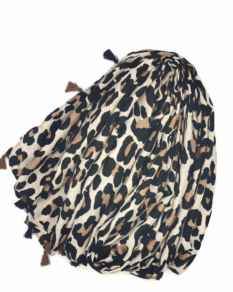 Foulard imprimé motif léopard avec pompons