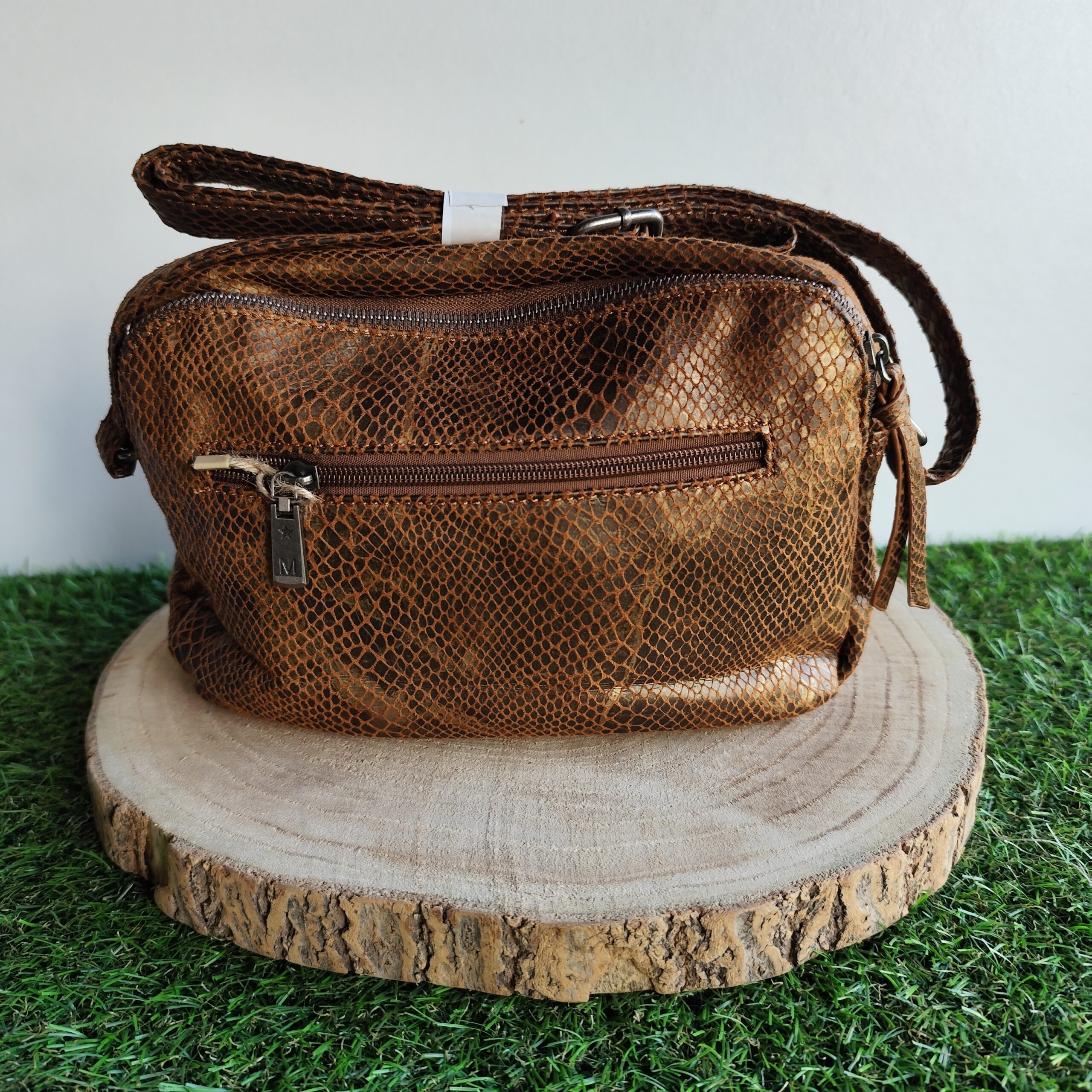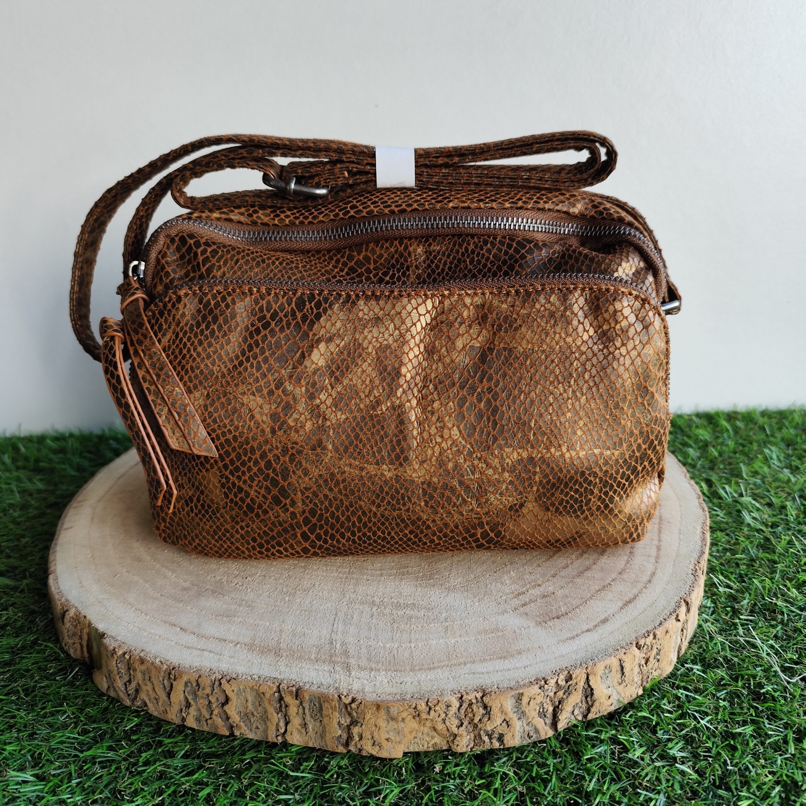Sac bandoulière irisé imprimé python Camel.